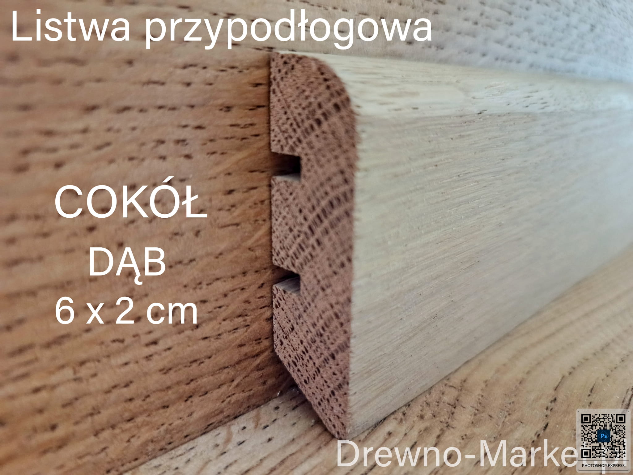 Cokół - Listwa przypodłogowa - Dębowa 6 x 2 cm